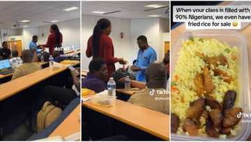 "This one is coloured": Nigerian lady overseas seen selling fried rice to students in UK class, video emerges