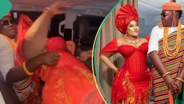 "She no even package": Reactions as Nkechi Blessing struggles to get in car because of corset dress