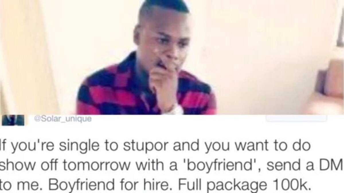 According to him, for a 'full package' of N100,000 single ladies can hire him and show him off as their lover. The package also includes giving of gifts.
