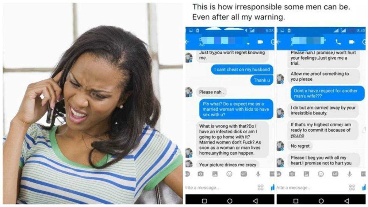 The lady posted screenshots of a chat between her and the alleged man on social media. In the chat, the man kept pestering the woman to sleep with him even after she told him she was married.