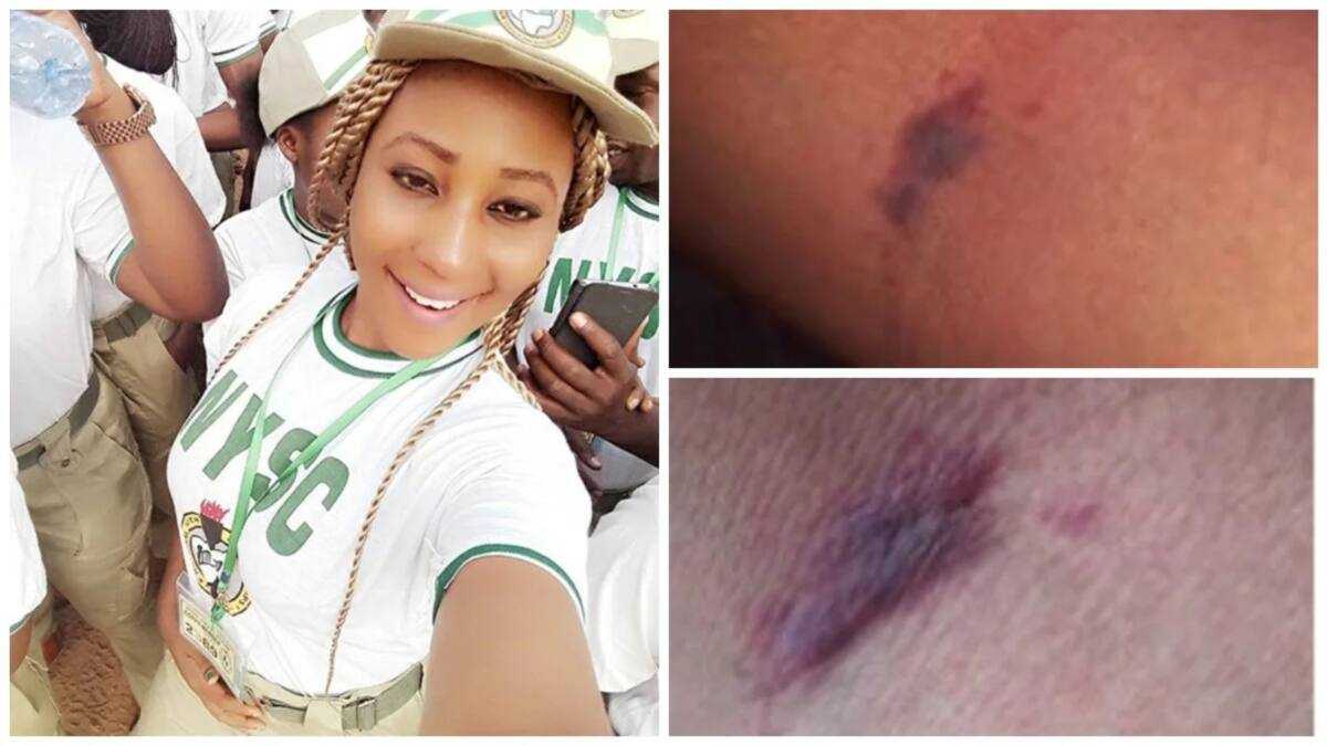 Legit.ng gathered that, a female corp member of the National Youth Service Corps (NYSC), identified as Angel Eluna, has taken to Facebook to share some photos and a story of how she was brutalized by an NYSC official in Ekiti State.