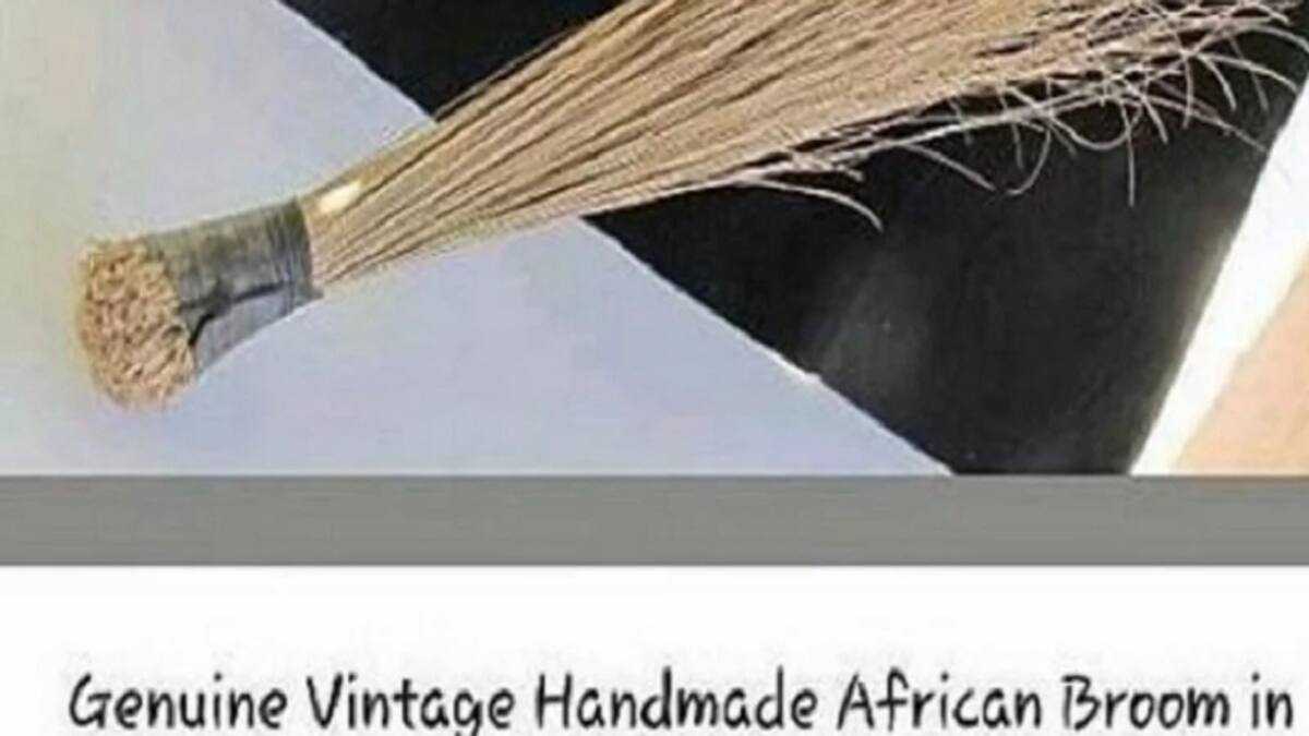 "What we have is a wonderful, genuine, vintage handmade African broom in excellent condition. We got this from a Ol' Gal that lived in Africa for 10 years and this was made for her back in the early 70's and she used it for years to sweep out her hut. And they brought it back with her when she moved back to the States. It is still in excellent, usable and very collectible condition.