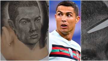 Art at its finest as barber draws stunning image of Cristiano Ronaldo with scissors; the hair is amazing (video)
