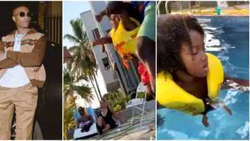 In a video shared by a Twiter user, @Wet_Wizkid, the entertainer was spotted chilling by the poolside with Jada as Zion had fun in the water with some other people around.