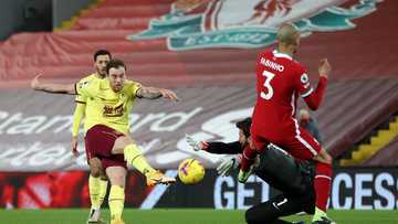 Goalkeeper Alisson Becker brought down Ashley Barnes in the second half and the Englishman stood to convert the penalty that condemned Liverpool to a defeat.