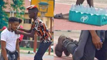 Emotional moment final year student kneels down for boy who hawks "pure water" to sign on his shirt goes viral