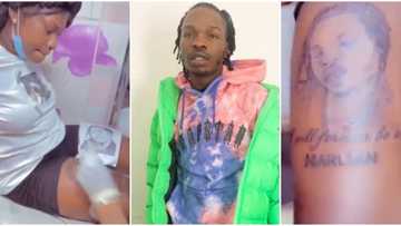 Another die-hard fan renders Naira Marley speechless again as she tattoos his face on her thigh