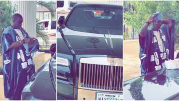 Fuji musician and Mayegun of Yoruba Land, Wasiu Ayinde, steps out looking classy in his Rolls Royce car