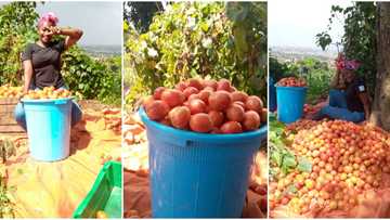 Pretty lady shows off the big and shiny tomatoes she harvested from her farm after 4 months, stirs reactions