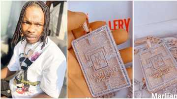 Bling gang: Rapper Naira Marley flaunts new diamond-studded Marlian Music pendant, necklace