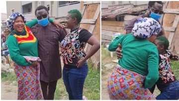 Toyin Abraham makes Mercy Johnson kneel to greet hubby Prince Okojie after he surprised her on set