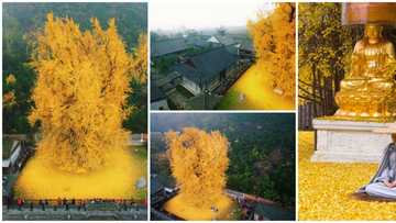 Beautiful photos of 1400-year-old tree that sheds golden leaves stun the internet, many want the leaves