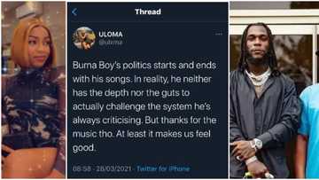 In other related news, Legit.ng earlier reported that a Nigerian writer, Uloma, took to Twitter to condemn the Rivers state government for the lavish gifts to artistes at Burna Boy’s Homecoming.