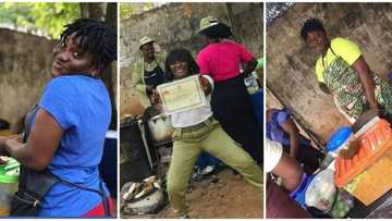 Nigerians react as female graduate becomes food seller, showcases her African salad business with joy