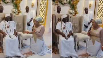 Your wives will multiply in the palace: Ooni of Ife bursts into laughter as wife kneels to pray for him