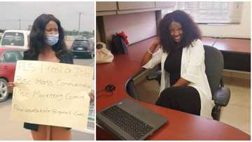 Female graduate who had hit the street with cardboard to beg for job finally gets one, shares office photo
