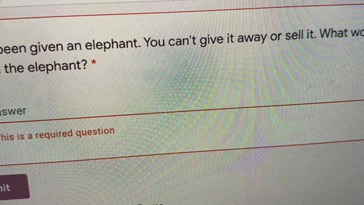 "You've been given an elephant. You can't give it away or sell it. What would you do with the elephant?"