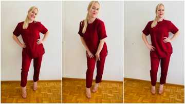 Oyinbo woman rocks Aba-made cloth, says it really looks good, Nigerians react to lovely photos