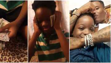 I only speak in foreign currency: Wizkid's 1st son Tife proudly flaunts dollars after hanging out with singer