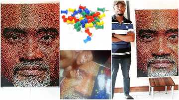 Talented Nigerian man uses 15000 office push pins to create beautiful artwork, gets massive comments