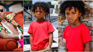 He go stubborn: Nigerians react to Wizkid's son Zion's tough-looking facial expression in cute photos