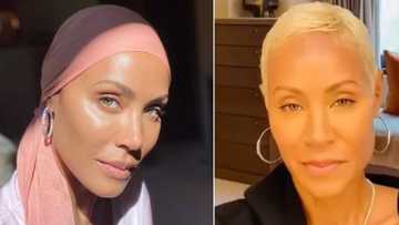 - Jada shared a picture of her bald head on social media alongside a snap she took when she had a full head of hair