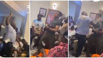 A video surfaced on social media which captured the moment two guests at Obi Cubana's home were seen engaging in a 'money fight'.