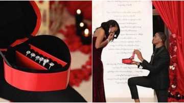 Man proposes to girlfriend with 6 different diamond rings and lovely giant-sized card, Nigerians react