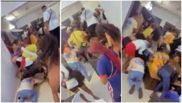 Slay queens fight over money sprayed at house party as they rush to pick it, one loses her wig in video