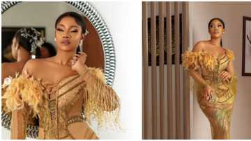 Wedding guest fashion: BBNaija Tacha attends Sandra Iheuwa's big day in stunning gold dress