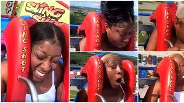 Hilarious video shows cute lady screaming in a rollercoaster as wind blows her wig away, stirs reactions
