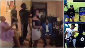Evicted BBNaija housemates Beatrice, Sammie and JMK cheer Angel on as they watch her clash with Boma
