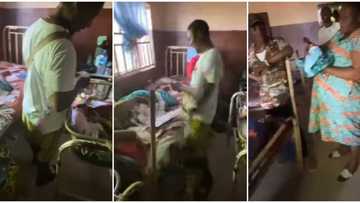 Nigerian man storms hospital, sprays N100 notes on new mother and newly born baby, video causes huge stir