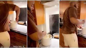 Billionaire son Kiddwaya dances happily, whines waist as he makes eba in funny video, calls himself Naija boy