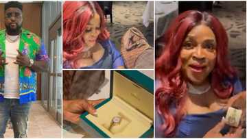 Davido's big brother Chairman HKN buys mum expensive Louis Vuitton bag and Rolex on her birthday