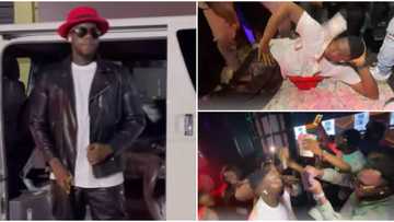 Comedian Cute Abiola sleeps in pile of money as he storms club with wife, friends to celebrate birthday