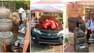 "Levels": Nigerian family buys daughter new car, gifts her expensive items as she moves to husband's house