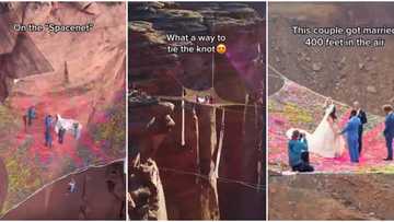 Daring couple tie the knot 400 feet in the air, video from their shocking wedding goes viral and causes a stir