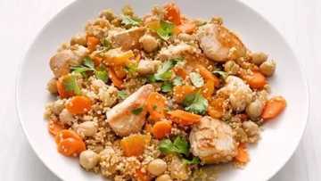 Step 10: Your chicken sauce is ready! Serve it with couscous, pasta, potatoes, or, most importantly, rice. Use spring onions for garnish.