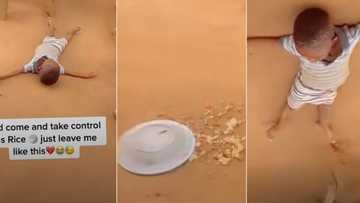 "God take control": Little boy falls to the ground after wasting plate of rice, video stirs emotions