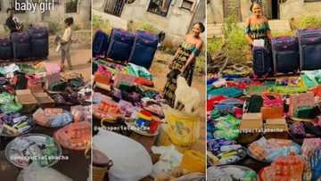 "Marry Odogwu that can pay in full": Nigerian lady brags as husband-to-be storms her house with loads of goods