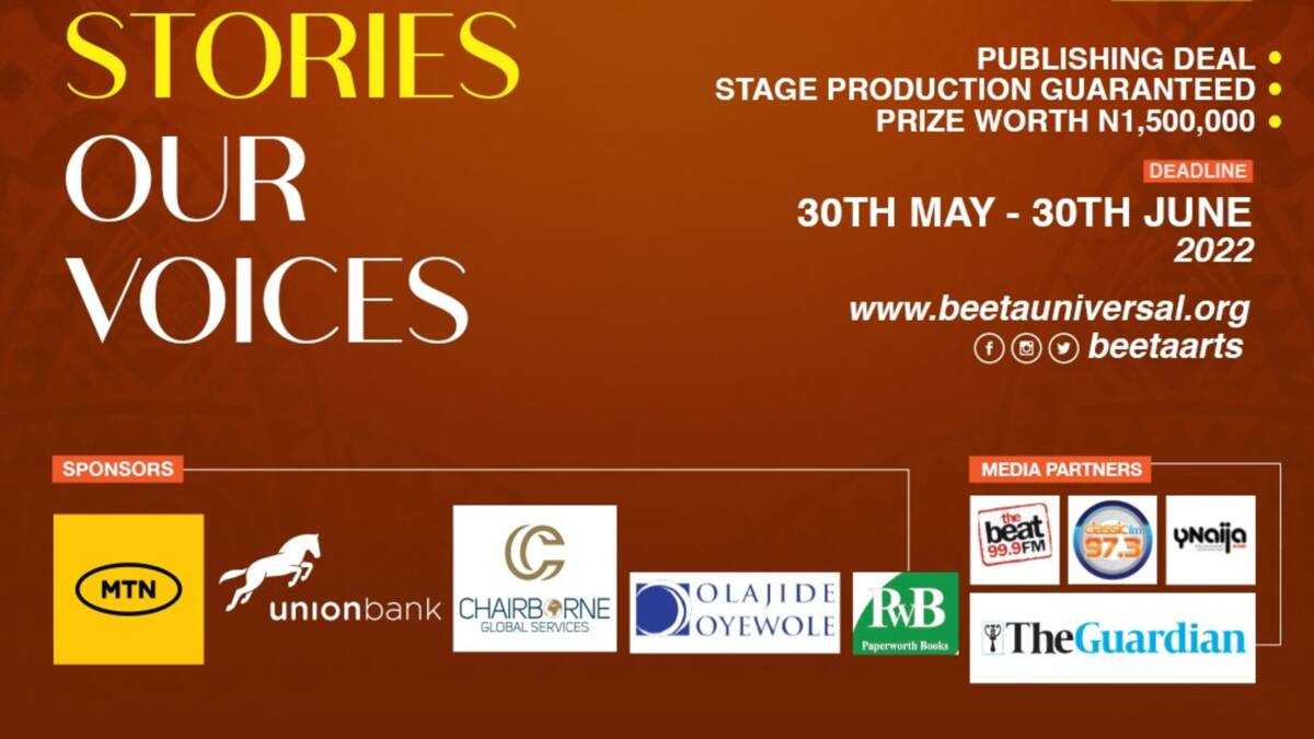 The competition's theme for this edition ''Our Stories Our Voices'' has a deadline for all entries from May 30 through to June 30, 2022, and calls for entries from indigenous playwrights between the ages of 18-40 who an esteemed panel of judges — made up of award-winning Playwright and Professor of the Arts, Ahmed Yerima as Chairman, Director and Producer, Kenneth Uphopho, Publisher, Ibiso Graham-Douglas, Writer and Producer, Ayo Jaiyesimi, Culture/Film Journalist and Arts Administrator, Shaibu Husseini and Veteran Actress and Producer, Ego Boyo — will judge.
