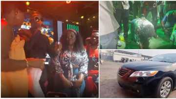 Lady falls on her knees, becomes emotional as she wins a car at Tunde Ednut's birthday party in Lagos