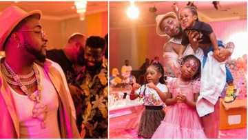 Daddy duties: Davido takes his kids Imade, Hailey and Ifeanyi to their cousin's birthday bash, poses with them