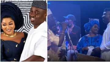Money gang: Moment Mercy Aigbe and new hubby rained cash on KWAM1 at Fathia Balogun's birthday party