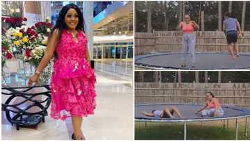 Chopping life in US: Helen Paul shares rare video of her and son playing on trampoline after meal of hot 'eba'