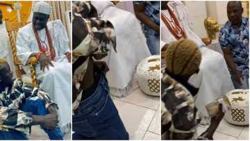 Portable: Ooni of Ife gifts singer bundle of cash, singer quickly hides it inside trousers to avoid 'ripping'