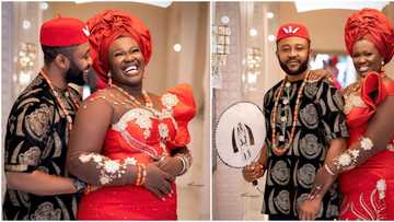 Real Warri Pikin all smiles, strikes pose with hubby as they rock traditional attire to mark 9th anniversary