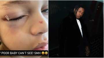 "My poor baby can't see": Runtown's baby mama cries out as singer's son injures his eye while playing