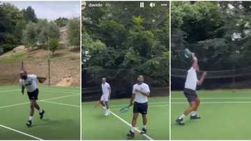 Billionaire’s game: Davido spotted playing lawn tennis with Obi Cubana, Kiddwaya, others, in viral video